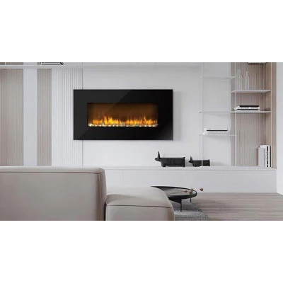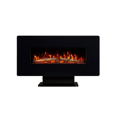 Flott elektrisk peis til å henge på veggen, eller for å stå på et bord eller lignende på det medfølgende stativet. Det gir et virkelig vakkert og fantastisk flammesyn innrammet av det elegante designet i svart og glass.