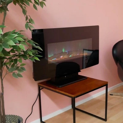 Elektrisk peis kan enkelt monteres på veggen ved hjelp av det medfølgende beslaget, og fremgangsmåten er den samme som når du monterer en flatskjerm-TV på veggen, eller plasserer den på det medfølgende stativet på et stabilt underlag.