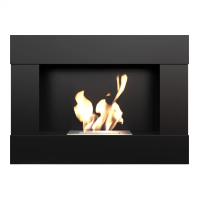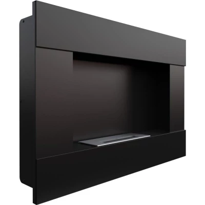 Smart og eksklusiv bioetanolpeis til oppheng på vegg i sort pulverlakkert stål. Peisen har en lekker bred ramme som virkelig