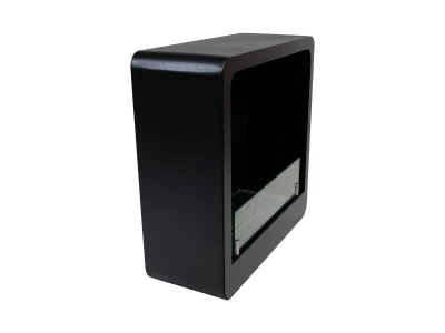 Vakker raffinert sort etanolpeis til å montere på en vegg. Det smarte kvadratiske designet skilles seg ut fra andre med sine fine avrundede hjørner. Med sin sorte arge er den et enestående blikkfang i sine moderne omgivelser. Selve rengjøringen og vedlikeholdelsen er enkel og grei, siden biopeiser verken produserer røyk, aske eller sot.