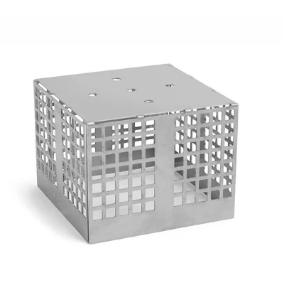 - Et firkantet skorsteinsgitter i rustfritt stål