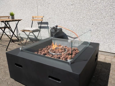 Skap den perfekte bålatmosfæren i hagen eller på terrassen med denne eksklusive gasspeisen. Bålplassen er et åpenbart samlingssted for gjestene dine, hvor de kan nyte et kjølig glass vin og se på de vakre dansende flammene.