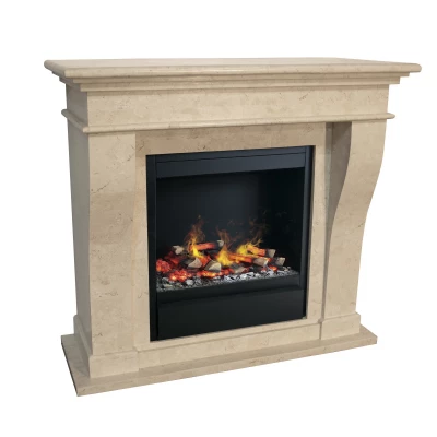 Denne Kreta hybridpeisen er storesøsteren til Kreta Mini-peisen, som har en mindre peisramme. Den store hybridpeisen er designet i både tidløst og moderne design, som leker med en ny tolkning av den tradisjonelle peisen, som kombinerer et tidsriktig og vintage uttrykk. Det er nettopp denne kombinasjonen som er med på å skape en organisk peis som fenger øyet. Peisen kommer i et sprukket hvitt fossilt steinutseende som gir karakter til designet som egner seg godt til moderne omgivelser.