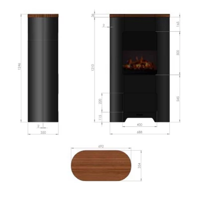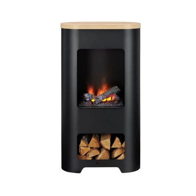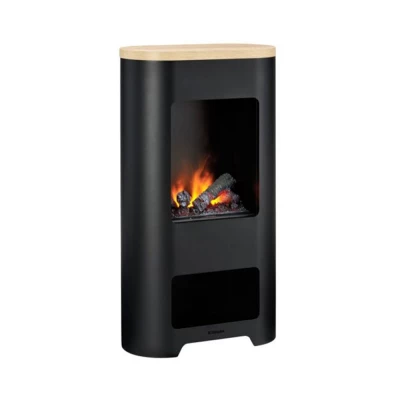 Peisen er laget av stål og har en topplate på toppen av trepeisen. Flammene er skapt av en Dimplex Opti-myst Cassette, som ved hjelp av vanndamp og lys skaper en fantastisk flammeeffekt, helt uten varme- og brannfare.