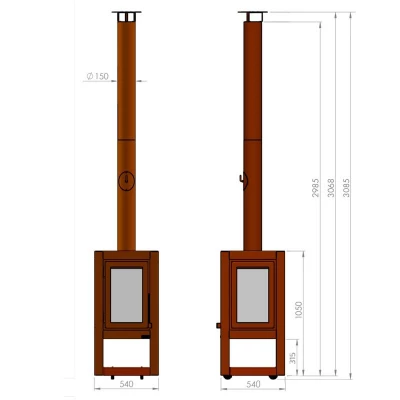 Quaruba XXL Mobile er utstyrt med bunnplate som kan brukes til oppbevaring av ved. Videre har denne modellen fire hjul, så transport av peisen er enkel.