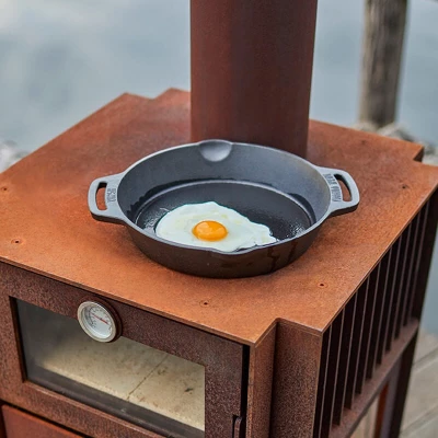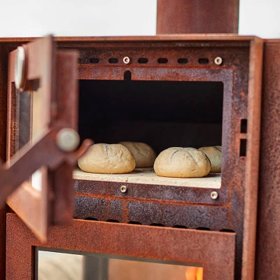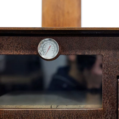 Peisen har en lukket bakvegg, med stålplate og varmebestandig betongvegg. Pipen er utstyrt med en 20 cm plate på toppen, som hindrer at regn kommer ned i peisen. Likeledes er det montert noen bolter på bena som gjør at det ikke dannes rustmerker på terrassen etter rusteprosessen. Håndtaket er plassert på høyre side av døren og lar deg sette døren på klem – noe som er perfekt under oppstart av peisen.