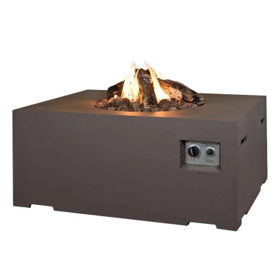 utendørs gasspeis i brun som kan fungere som et lite bord, ettersom det er mulig å