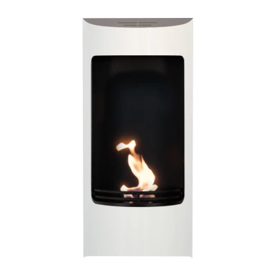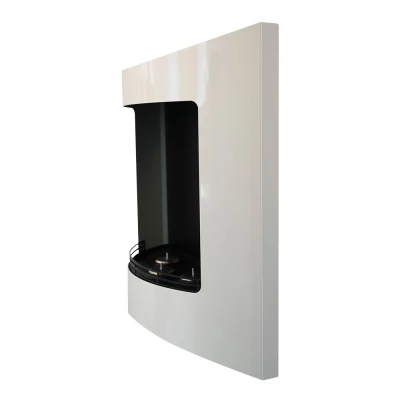 Den veggmonterte biopeisen er laget av pulverlakkert stÄl og rustfritt stÄl. Peisen er imidlertid kun egnet for innendÞrs bruk.