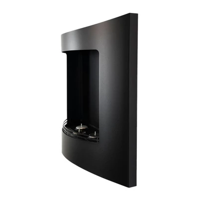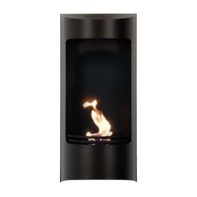 Den veggmonterte biopeisen er laget av pulverlakkert stål og rustfritt stål. Peisen er imidlertid kun egnet for innendørs bruk.