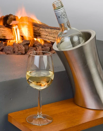 Lite sidebord i tre til gasspeis fra Happy Cocooning