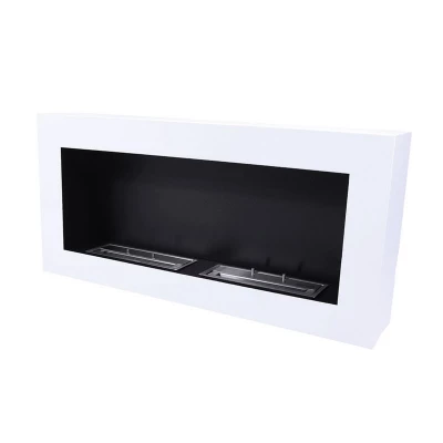Denne delikate veggmonterte bioetanolpeisen kan monteres på en vegg, eller du kan velge å bygge den inn. Peisen er laget slik at den har to brennere og er helt åpen inn til ilden. Den er tidløs og elegant i sin hvite farge og smelter naturlig inn i omgivelsene. Designet i den firkantede formen og de skarpe kantene møtes i en vakker balanse med den vakre naturlige ilden. Bakplaten er i svart så den får fargene til å fremstå sterkere, og flammen får mer dybde. Rengjøring og vedlikehold er håndterbart, da det ikke produserer sot, røyk eller aske.