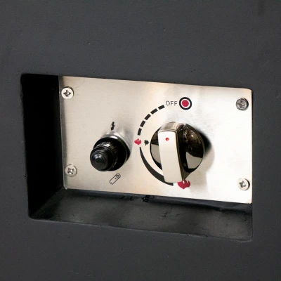 Gasspeisen har en enkel automatisk tenningsfunksjon, og flammene justeres enkelt ved å vri på en knott. I tillegg er peisen utstyrt med en CSA/CE-godkjent gassbrenner med automatisk sikkerhetsslukking.