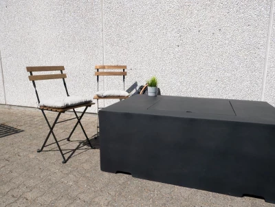 Tokyo Fire Pit er en utendørs bålfat som brenner på LPG-gass. Peisen har en langstrakt design og er laget av hardfør MgO, som gir lang levetid og er motstandsdyktig mot vind, vær og bruk.
