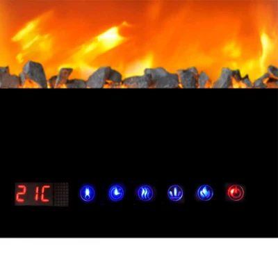 Den elektriske peisen styres enkelt via et berøringskontrollpanel på forsiden av peisen eller via den medfølgende fjernkontrollen.